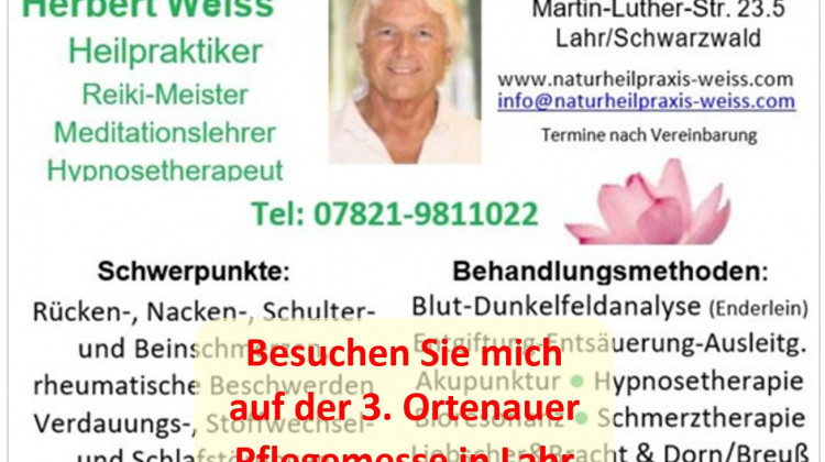 Die Naturheilpraxis Herbert Weiss, Lahr ist Aussteller auf der Ortenauer Infomesse für Pflege & Lifestyle & Freizeit & Sport am 21.+22.09.2024 in Lahr (LGS-Gelände)
